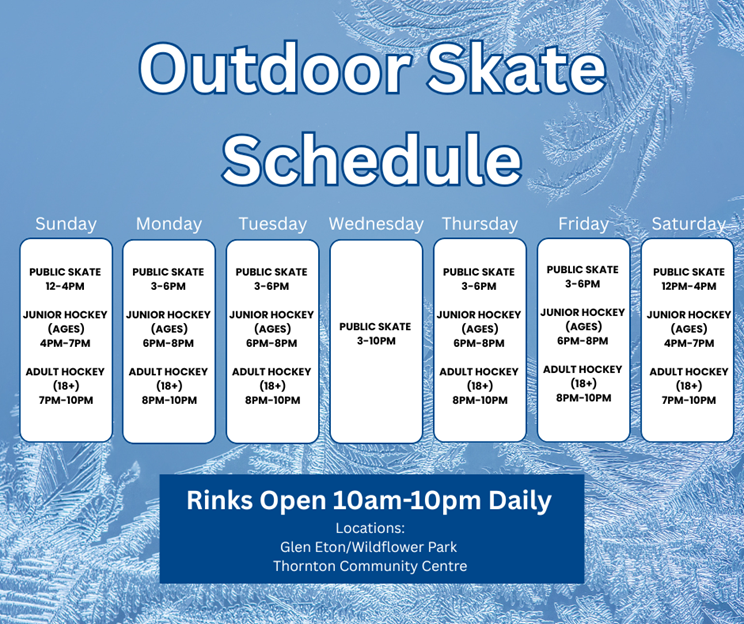 In addition to our indoor skating programs, enjoy our outdoor rinks this winter season! Outdoor rinks are located at the following locations:
