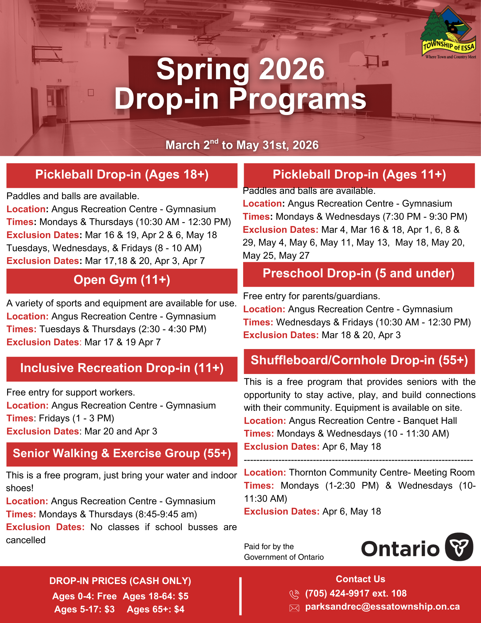 Welcome to the Township of Essa’s Drop-in Recreation Programs!